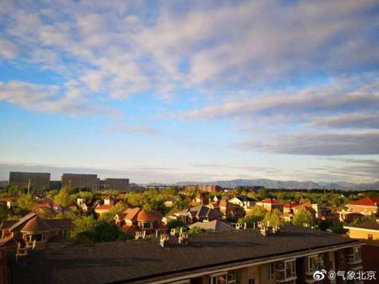 北京市气象台预计,今天白天多云间晴,北转南风2、3级,最高气温18℃;夜间多云(西部山区有小雨)转晴,南转北风2级左右,最低气温8℃。