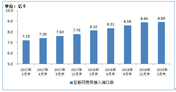 2017年3月末-2019年3月末互联网宽带接入端口数发展情况