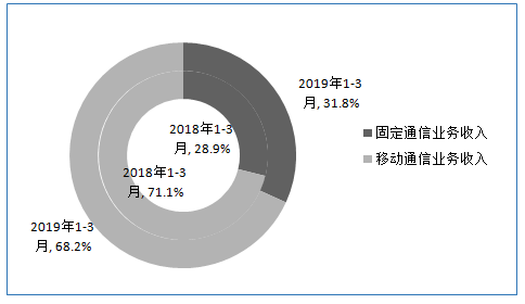 固定通信业务收入占比稳步提升。一季度,三家基础电信企业实现固定通信业务收入1057亿元,同比增长11.2%,在电信业务收入中占31.8%,占比较去年同期提高2.9个百分点;实现移动通信业务收入2266亿元,同比下降3.1%,占电信业务收入的68.2%。