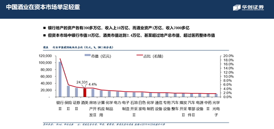 1)银行地产的资产各有200多万亿,收入上10万亿,而酒业资产1万亿,收入7000多亿但资本市场中银行市值10万亿,酒类市值达到2.4万亿,甚至超过地产总市值,超过医药整体市值