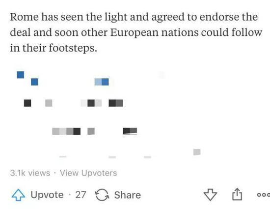 在另一个关于“意大利加入‘一带一路’,欧盟其他国家怎么看?”的问题中,一位意大利网友不遗余力地向其他人科普道:在意大利之前,早就有近一半欧盟国家加入“一带一路”了!