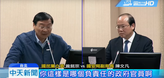 国民党“立委”曾铭宗也质问什么是“同路媒体”,一共有几家,陈文凡仍声称“资讯不必怀疑”“我不愿意回答这个问题”。对陈拒答问题的做法,曾铭宗气愤称,“要到监察院告你”。另一国民党“立委”马文君也批评台“国安局”:“不要当打手”。