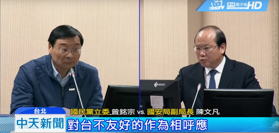 [环球网报道 记者 付国豪]为了污蔑大陆,台当局官员又发明“新名词”。台“国安局副局长”陈文凡5月2日声称,大陆对在台湾的“同路媒体”提供特定报道内容“带风向”。但“蓝委”吕玉玲等人批评这是说话不负责任,制造假新闻、充当打手,“蓝委”曾铭宗更是气愤表示要状告“监察院”。
