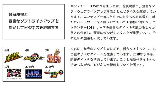 但在今年的财报中,Switch 新游戏阵容、E3 发布会和一些商业决策消息仍有露面,唯独缺少了有关 3DS 新游戏的内容。