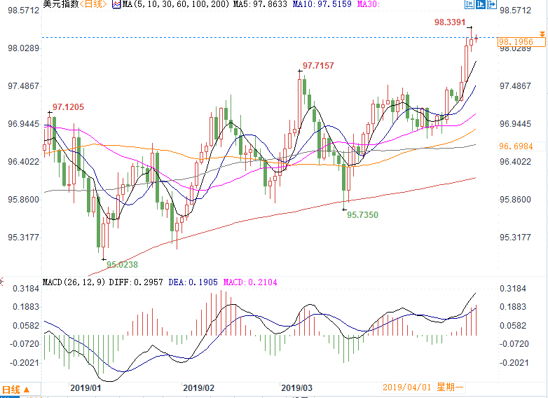 自4月17日以来,美元指数上涨了1.2%,并在4月25日创下两年高点98.3391。一些分析师表示,基于美国经济表现良好,而欧洲经济数据疲软,美元指数可能会出现突破。不过,如果美元进一步走强,可能对跨国公司的股票和盈利造成负面影响。
