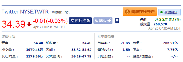 Twitter第一季度营收为7.87亿美元,同比增长18%;净利润为1.91亿美 元,较上年同期的净利润6100万美元增长213%。