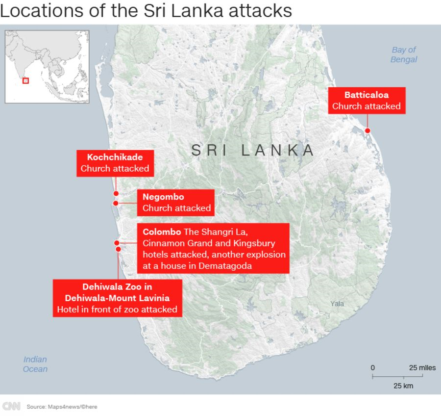 就在当天下午,斯里兰卡发生八起连环爆炸事件,造成至少290人死亡。对于斯里兰卡而言,这是自持续近30年的内战结束以来,斯里兰卡发生的最严重的袭击事件。