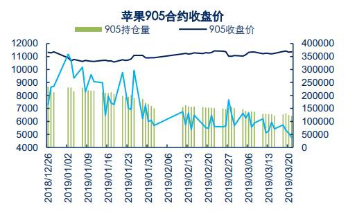 回看一季度苹果市场运行大致分为两段,第一段,一月上中旬,主要运行逻辑为前期市场炒作圣诞节、元旦苹果节日消费提振市场预期,但节日消费不及预期,期价大幅下挫,但受限于仓单成本支撑,现货价格坚挺,期价止跌。第二阶段为春节过后,由于圣诞元旦消费不及预期,部分客商未对春节消费抱有太高预期,备货量偏少,春节期间受节日消费提振,苹果消费超预期,节后客商补库带动现货价格上涨,期货跟涨,走出震荡偏强的行情,回顾一季度苹果主力合约整体看,仍维持区间震荡的走势,主力合约AP1905截至3月21日收盘于11355点,较1月2日收盘价11352点,略涨3点。