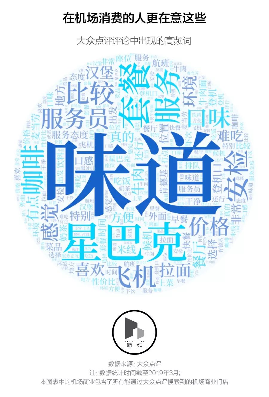 我们也同步计算了机场里关键词为“牛肉面“和“咖啡馆”这两个餐饮类别的整体价格,它们的平均价格分别为48元和62元。与城市内同类商铺比较,机场内餐饮的价格依然偏高,而从评论的词频数据看,机场餐厅的味道、服务、环境以及便利度等依然是大家最希望得到满足的关键词。