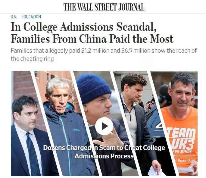 原标题:美媒:美大学招生丑闻涉中,花钱最多的一些家庭来自中国