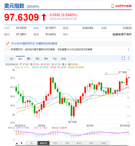 4月23日美元全线走高,美元指数刷新2017年6月以来高点至97.78,因金融市场在复活节假期后重开,且交易商在周五美国公布首季国内生产总值(GDP)数据前青睐美元。