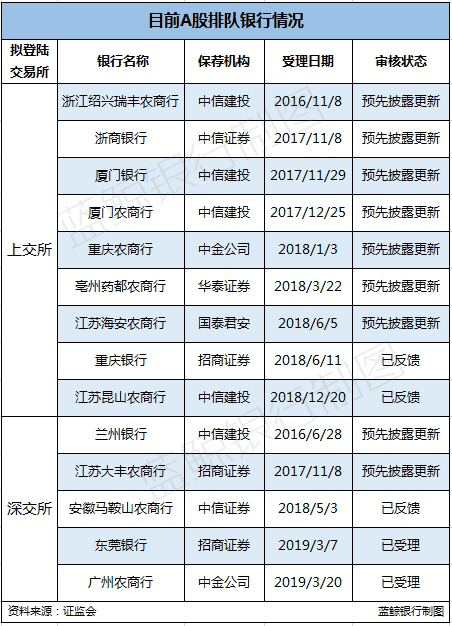进入2019年,中小银行A股IPO提速明显。截至18日,在上交所排队的银行有9家,深交所5家。