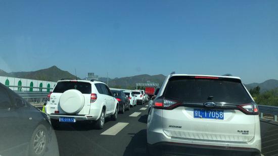 知道君了解到,古北水镇的车位非常紧张,一度停满,道路拥堵严重;京昆高速张坊出口行驶缓慢。