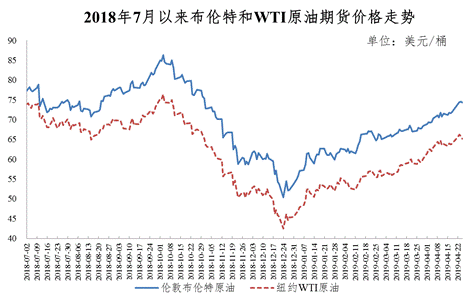 年初至今,伦敦布伦特、纽约WTI油价分别大幅上涨了35%和40%。国际油价持续攀升一是由于全球供应收紧,如欧佩克从1月起执行新一轮减产,欧佩克产量降到了3000万桶/日的水平,市场由供应过剩转向供应不足。二是地缘政治局势持续紧张,如委内瑞拉局势恶化,产量大幅下降,利比亚武装冲突不断,市场担心伊朗会采取偏激措施对抗美国制裁。三是近期主要经济体发布的经济数据有所改善,中美贸易谈判预期乐观,大宗商品需求向好,提振了市场情绪。