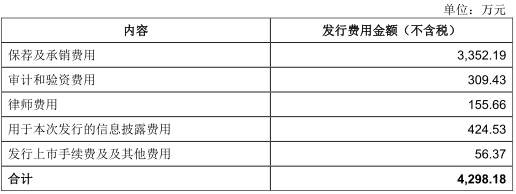 博通集成上市发行费用总额为4298.18 万元。其中,中信证券获得保荐及承销费用3352.19万元,立信会计师事务所获得审计和验资费用309.43万元,上海市锦天城律师事务所获得律师费用155.66万元。