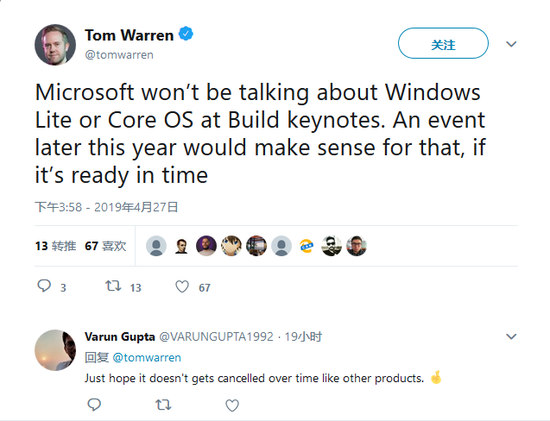 在这条推文中,他指出在即将到来的Build 2019开发者大会上微软并不会讨论Windows Lite以及此前多次跳票的另一个操作系统项目Windows Core OS。导致延迟的原因可能是微软需要倾注更多的资源来推进基于Chromium的新版Edge浏览器。