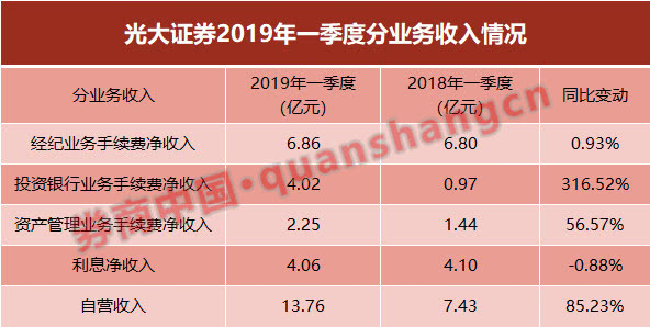 然而,因投行业务收入大增带动业绩的券商却不多见。光大证券一季度实现投行手续费净收入4.02亿元,同比增加316.52%,增幅在已发布一季报的32家券商中居首。