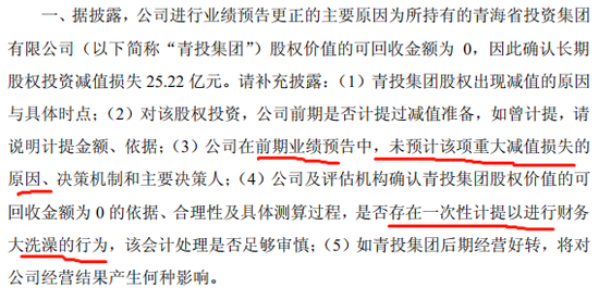 不过,业绩变更公告发布的18日当天下午,西部矿业便收到上交所的问询函。从问询函问询函关注点来看,主要针对西部矿业此前信息披露工作是否失责。