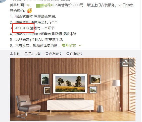 前两天某厂家发布了宣传已久的“壁画电视”,65寸超薄机身仅售6999元看似不错。