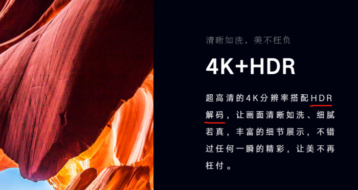 求真君翻遍官网,才在底端看到画质的相关表述:“超高清的4K分辨率搭配HDR解码……”,然后底下注释才说明,支持HDR是处理器支持HDR的意思。