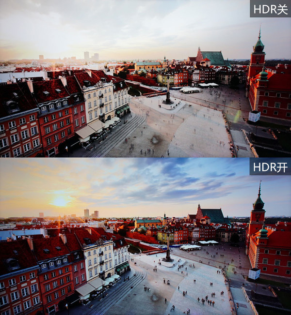 可以发现,HDR的效果十分突出,天空的云彩表达清楚,右下角的建筑也看清了窗户,整体画面比非HDR效果更通透,色彩更饱满。
