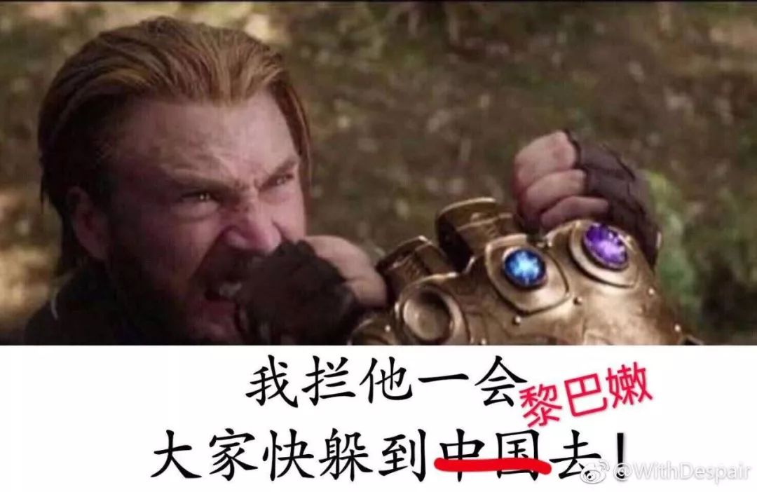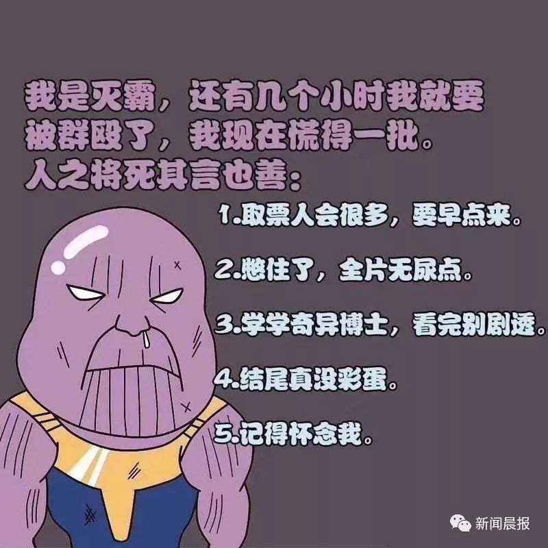 由于今年同步上映,灭霸想在中国多活一会儿的美梦破裂了。/ 微博网友@WithDespair