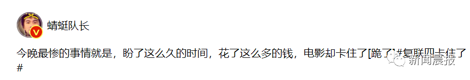 有人欢天喜地、心潮澎湃地看零点场的时候,却有一批观众因为影片放映失误(模糊)而足足耽搁了20分钟……