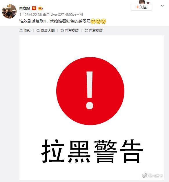 发了“拉黑警告”:
