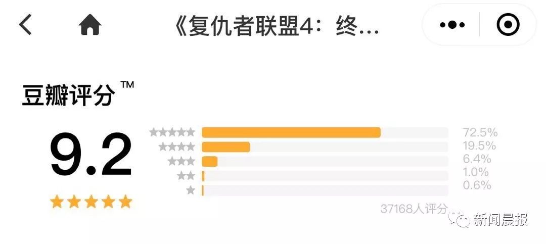 《复联4》目前在豆瓣上的评分是9.2