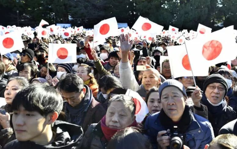 报道称,在日本国庆节期间悬挂小国旗是惯例。参观者在皇宫迎接天皇时,也会挥舞小国旗致意。