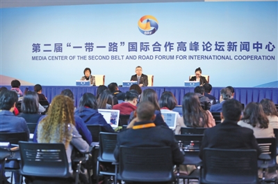 昨日,国家发改委举行媒体吹风会,国家发改委副秘书长苏伟介绍第二届“一带一路”国际合作高峰论坛分论坛相关情况。新京报记者 侯少卿 摄