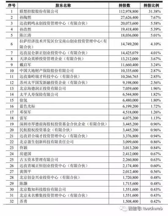 拉卡拉上市发行前,联想控股持股为31.38%,为大股东;孙陶然持股7.67%,为第二大股东;达孜鹤鸣永创投资管理中心(有限合伙)持股为5.58%;