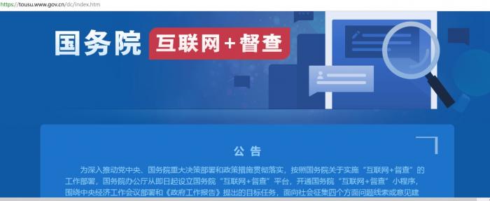 (国务院“互联网+督查”上报问题线索和建议的网址:https://tousu.www.gov.cn/dc/index.htm)