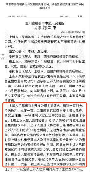 此外,北青报记者检索发现,今年1月10日,成都市中级人民法院对“成都市兰花楹农业开发有限责任公司、顾福宴侵权责任纠纷”一案做出二审民事判决,该案涉及的正是2017年7月9日的那起事故。