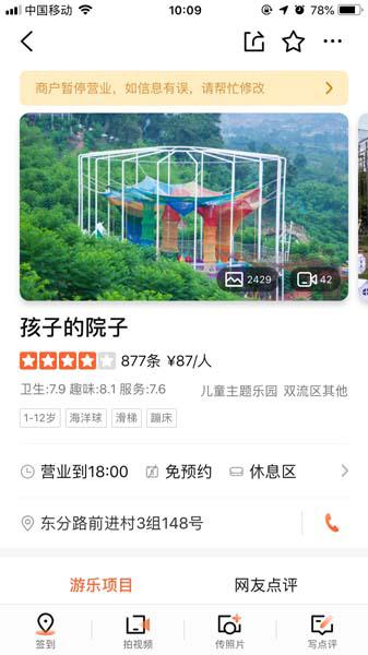 此外,北青报记者注意到,在一家团购点评网站上,“孩子的院子”曾被多名家长给了差评。有家长称,有的露天游乐设施只有一些网作为围栏,但周边看不到几个工作人员,安全措施很可疑,“比如那个高处钢管滑梯,居然没有工作人员在,还需要自己提着轮胎滑下去,很容易发生意外”。也有家长留言称,自己的孩子在滑梯上玩耍时,额头被划出一道口子。