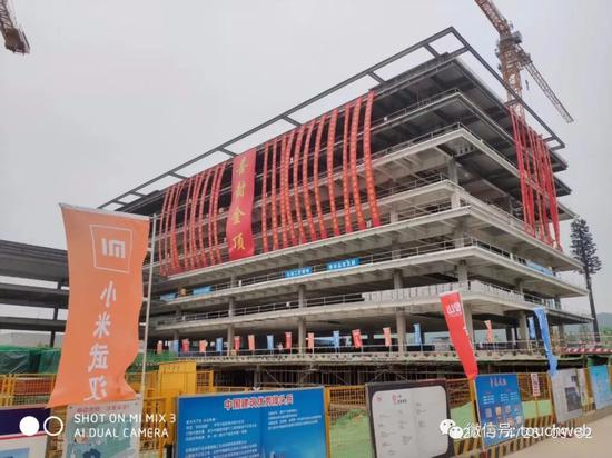 小米称,自开工以来,小米和中建三局全体项目员工日夜奋战,圆满完成封顶节点。