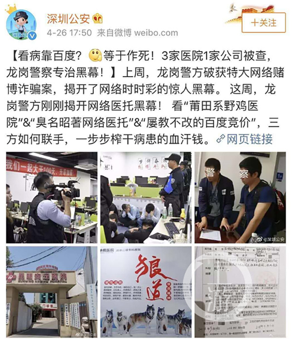 上游新闻4月27日消息,4月25日,深圳龙岗警方披露了打掉的一起涉医诈骗犯罪团伙,“莆田系医院”、“网络医托”、“网上竞价”等三方如何联手榨干病患的血汗钱,引发社会广泛关注。