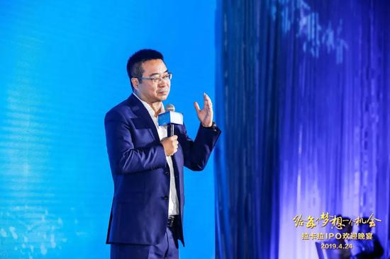 孙陶然在2019年4月24日拉卡拉首次公开发行股票上市欢迎晚宴致辞