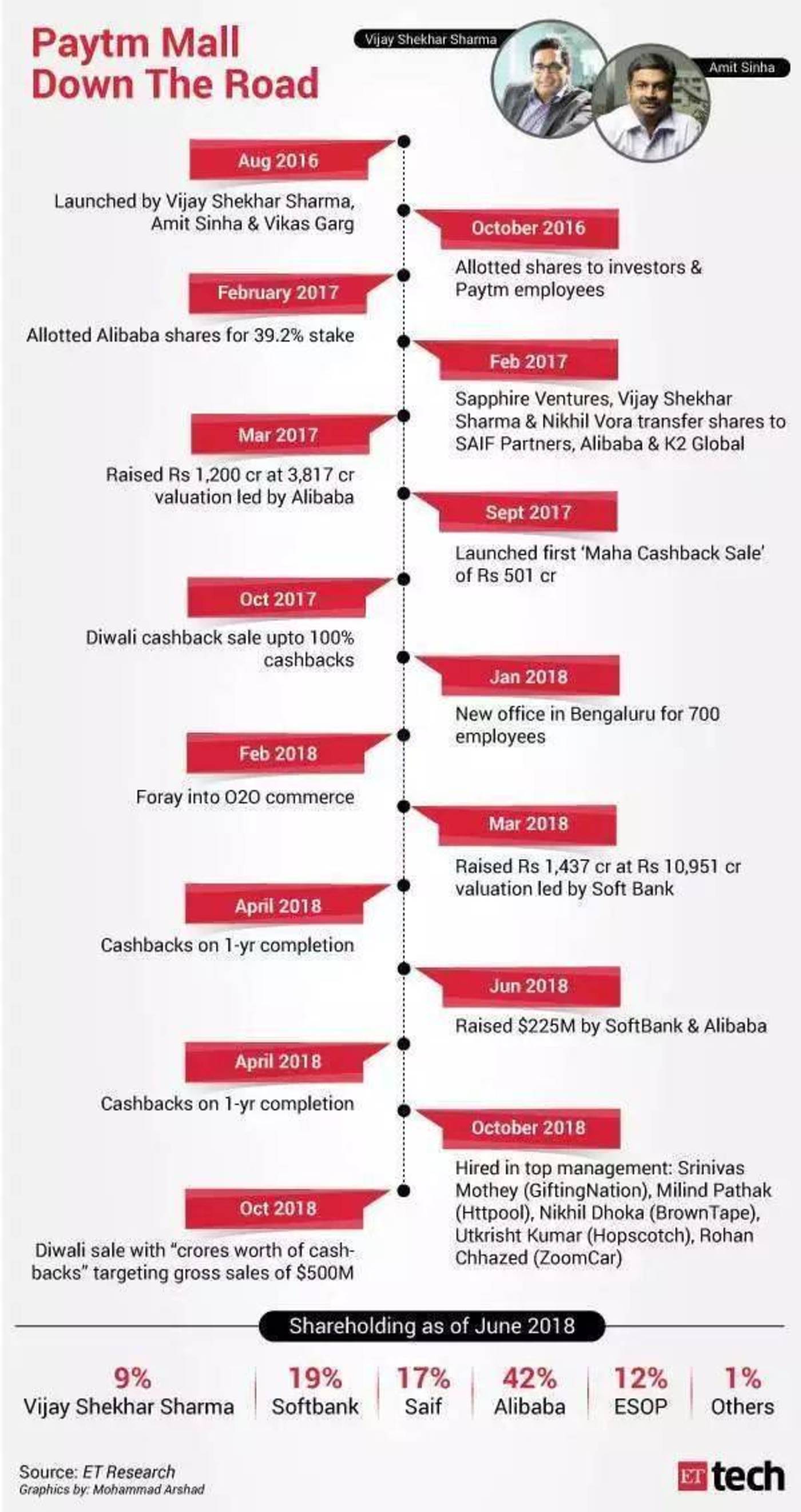 Paytm创始人Vijay Shekhar Sharma意识到,阿里巴巴和软银不会再注入新的资金,于是在去年12月获得董事会的批准,以引入一名战略投资者。如今他也在回归基础业务,推动建立线上到线下(O2O)模式,让小型授权商家能够在网上销售。