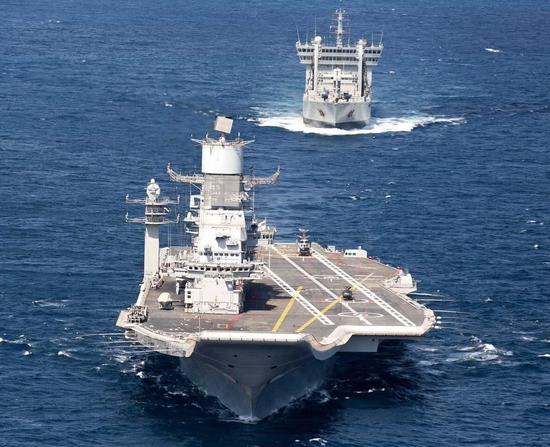 目前印度海军现役的仅有一艘航母,那就是前些年从俄罗斯引进的40000吨级航母“维克拉马蒂亚”号,她的前身是苏联退役的基辅级4号舰“戈尔什科夫海军元帅”号载机巡洋舰,其经过改造后并不理想,过于居中的舰岛占据了大片宝贵的飞行甲板空间,导致了舰载机起降的不方便,这也是印海军急着要建造国产航母的主要原因之一。