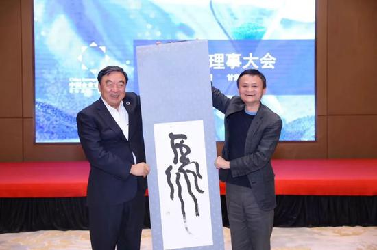 马云向马蔚华赠送亲笔写的“马”字,以感谢马蔚华过去六年为俱乐部所做的杰出贡献