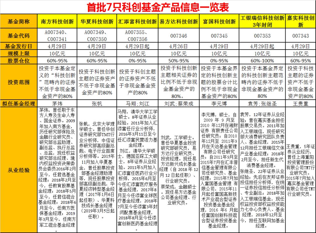 南方、华夏、易方达、富国、工银瑞信、汇添富、嘉实这7家公司的首批科创基金谁将更受欢迎,还有待市场的检验。