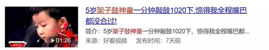 比如,一位5岁的打架子鼓神童,他可以一分钟敲鼓1000多下,手速快到不可思议。架子鼓打得很快,无论打出来的音乐好不好听,“快”可以让他得到“神童”的殊荣。
