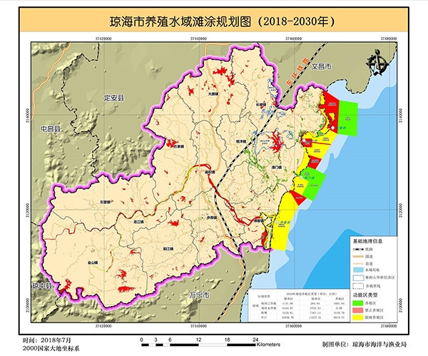 琼海市养殖水域滩涂规划图(2018-2030年)。琼海市海洋与渔业局 图