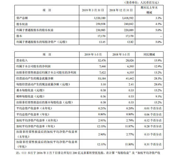 新浪财经讯 4月23日消息,平安银行公告,2019年一季度营业收入324.76亿元,同比增长15.9%。一季度实现净利润74.46亿元,同比增长12.9%,第一季度不良贷款率1.73%。