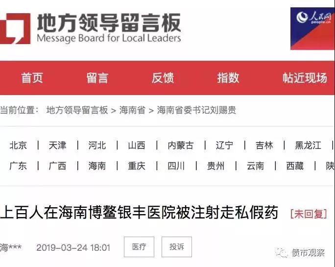 此外,有网友3月24日在“人民网-地方领导留言板”留言反映称,其怀孕的妻子曾在博鳌银丰康养国际医院注射HPV疫苗,“现已被警方通知当时所注射疫苗为走私假药”。