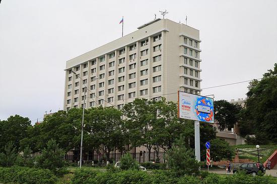 在潜艇的西边,有一座宏伟宽大的俄式高层建筑,门前有两具大铁锚,门庭上方置放着一艘精美的战舰模型。这是二战时期叱咤海上的苏联太平洋舰队总指挥部。如今,也仍然是俄罗斯太平洋舰队司令部的所在地。