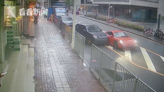 4月19日上午7点左右,一名女子驾驶一辆红色保时捷撞上路边一辆正在卸货的小货车。女子立即停了下来,但并没有第一时间下车。于是,被撞小货车的司机主动上前理论,身穿黑色上衣的保时捷女司机脚步有点轻浮,跌跌撞撞地走了过来。但双方还没说上几句话,该女子却突然返回车上,离开了现场。