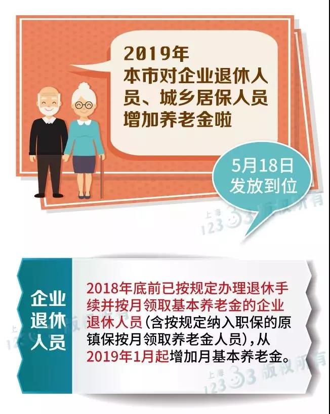 上海市人社局今天刚刚发布,从2019年1月起,对企业退休人员(含按规定纳入职保的原镇保按月领取养老金人员)、城乡居保领取养老金人员增加养老金,将于5月18日通过相关银行、邮局发放到领取养老金人员的账户中。