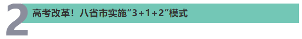 近日,河北、辽宁、江苏、福建、湖北、湖南、广东、重庆等八省市相继发布本省份高考综合改革实施方案。方案明确,从2018年秋季入学的高中一年级学生开始实施“3+1+2”模式:“3”为全国统考科目语文、数学、外语,所有学生必考;“1”为首选科目,考生须在高中学业水平考试的物理、历史科目中选择一科;“2”为再选科目,考生可在化学、生物、思想政治、地理4个科目中选择两科。从2021年起,8省市新高考考生总成绩由统一高考科目成绩和学业水平考试选考科目成绩构成,满分750分。